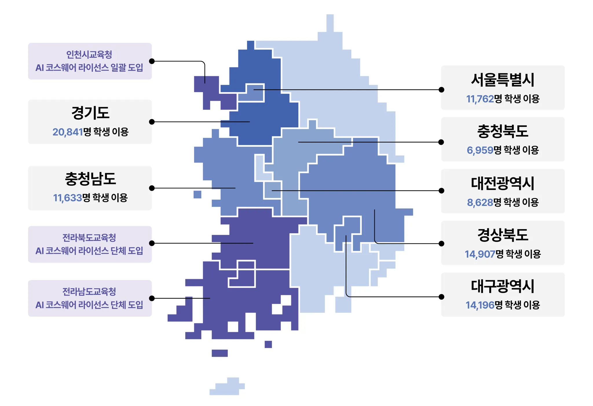※ 2024년 11월 활성 이용자 수, 일부 시도교육청은 단체 라이선스 도입으로 전면 적용