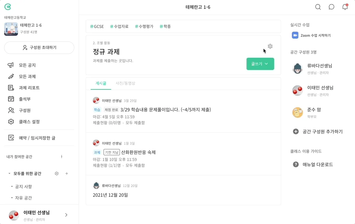 클래스에서 내 프로필 영역(PC 기준 좌측 하단)을 클릭하면, 클래스 내 댓글과 반응 알림을 설정할 수 있어요.