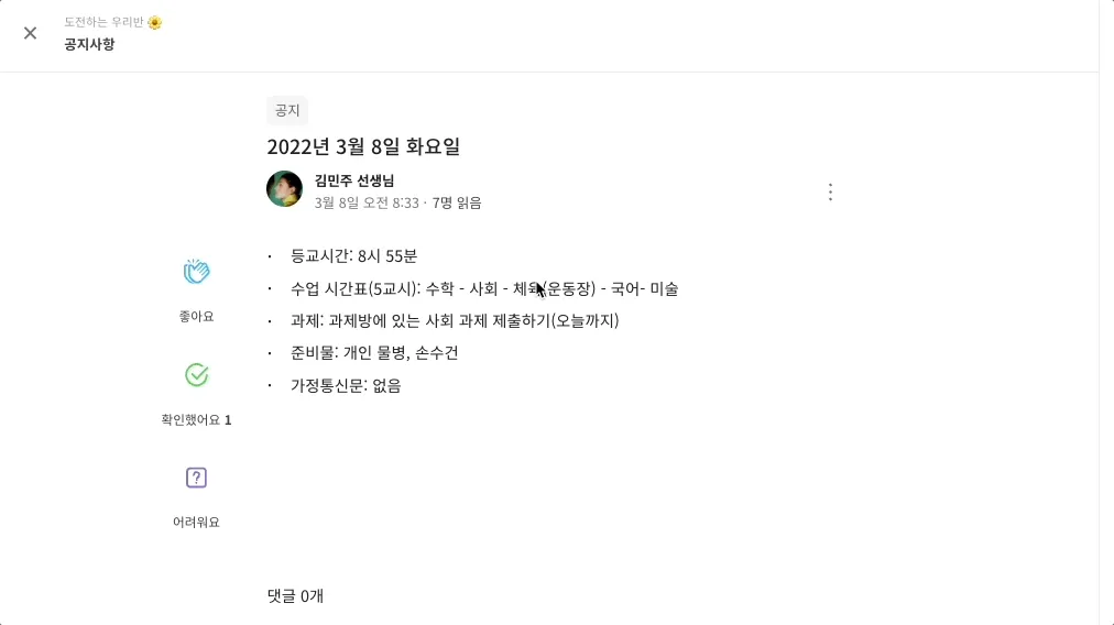 내일 아침 안내를 위한 게시글을 작성하셨나요?