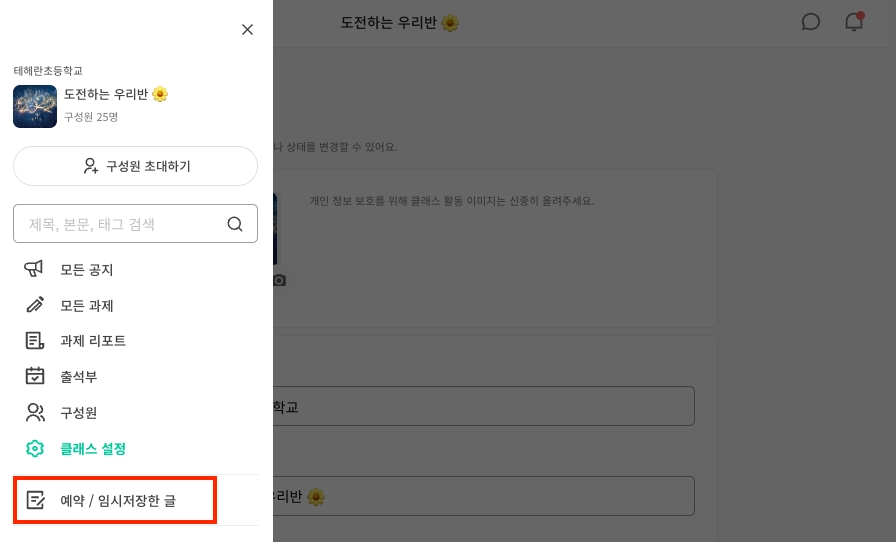 클래스 내 게시글 알림 설정