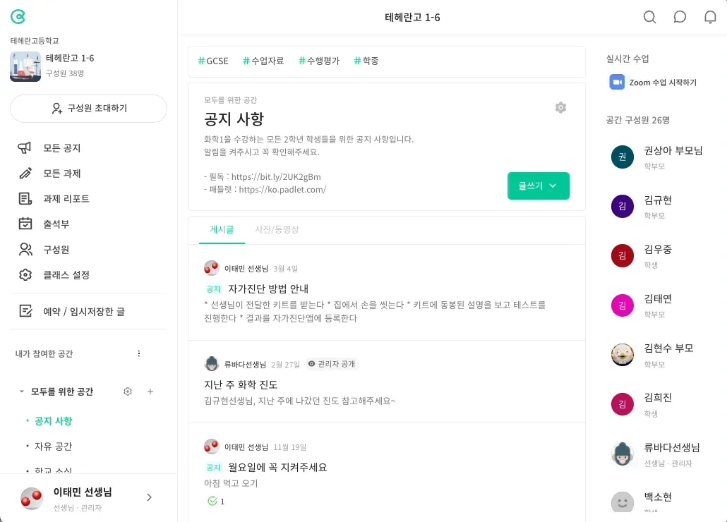 “공지사항을 교실에서 화면으로 크게 보여주고 싶어요”