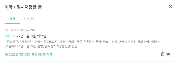 예약을 하고 나서 메뉴의 [예약 / 임시저장한 글]을 클릭하면
