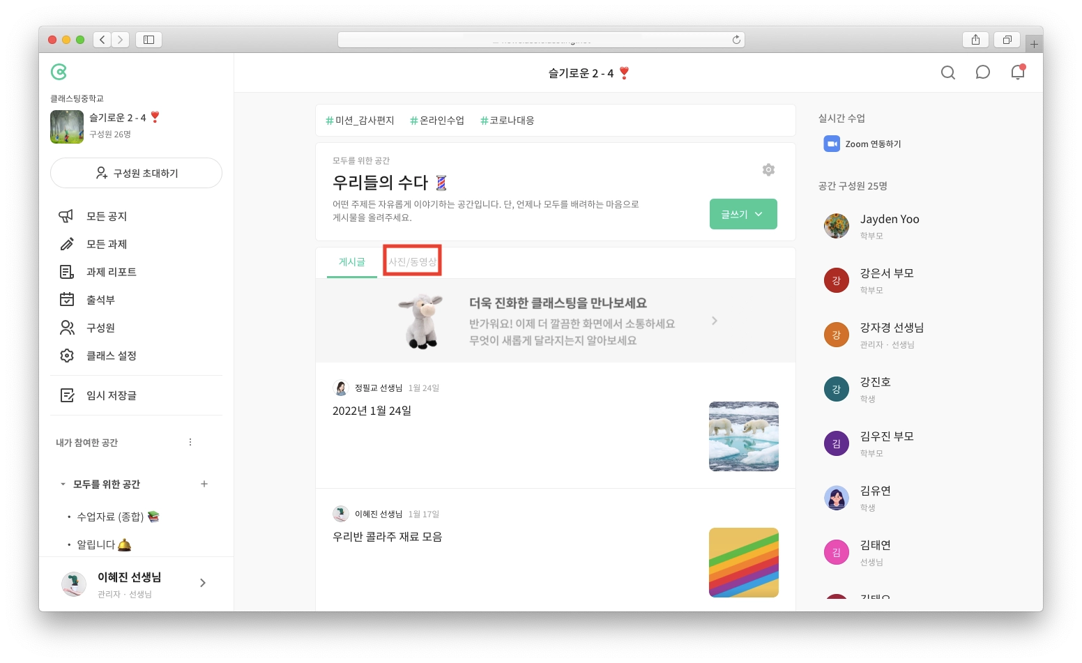 앨범 보기 모드는 클래스의 모든 공간에서 적용 가능해요.