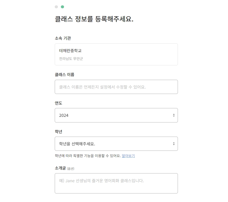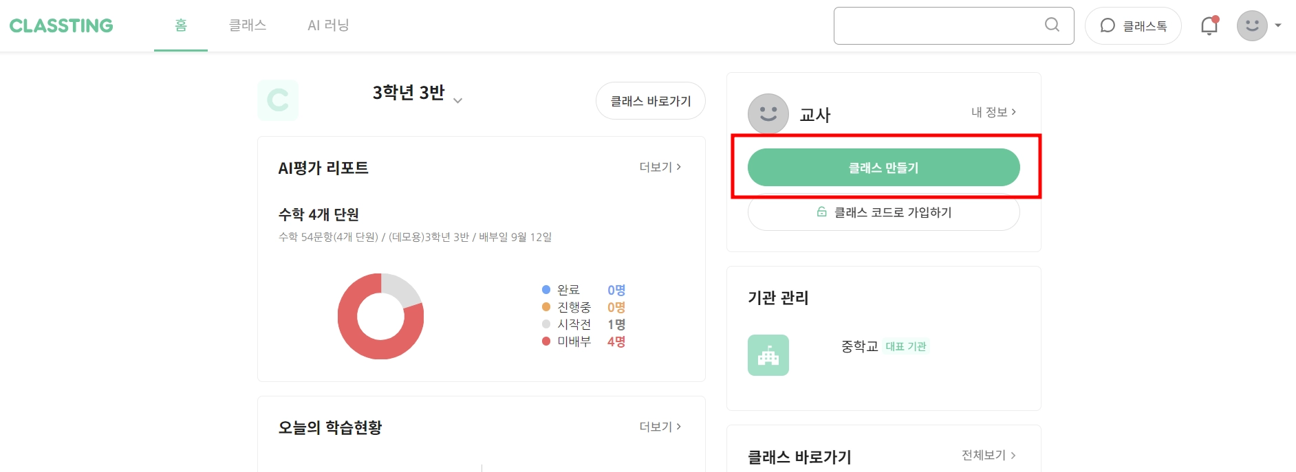 클래스 만들기 > 소속 기관 선택 > 클래스 정보 입력하여 클래스 개설 가능합니다.