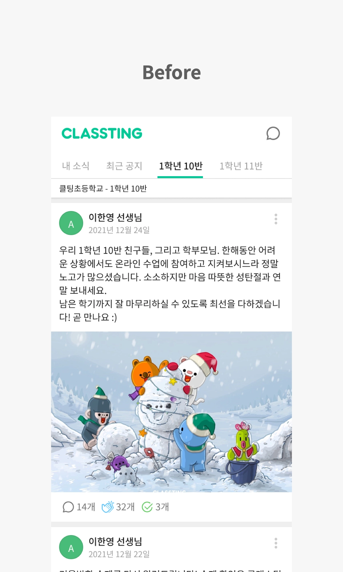 기존 클래스 화면이에요.