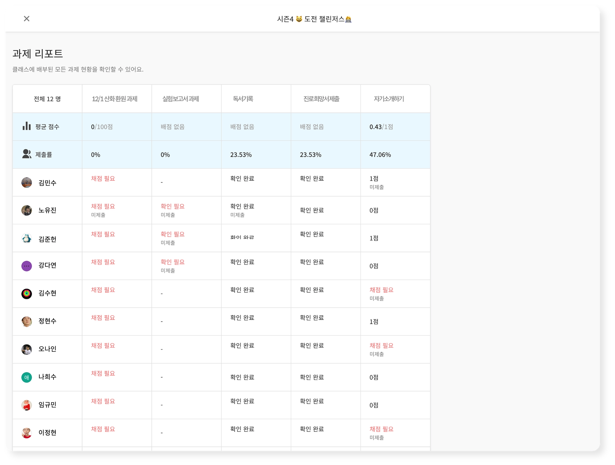 리포트로 전체 과제 제출 현황 확인하기