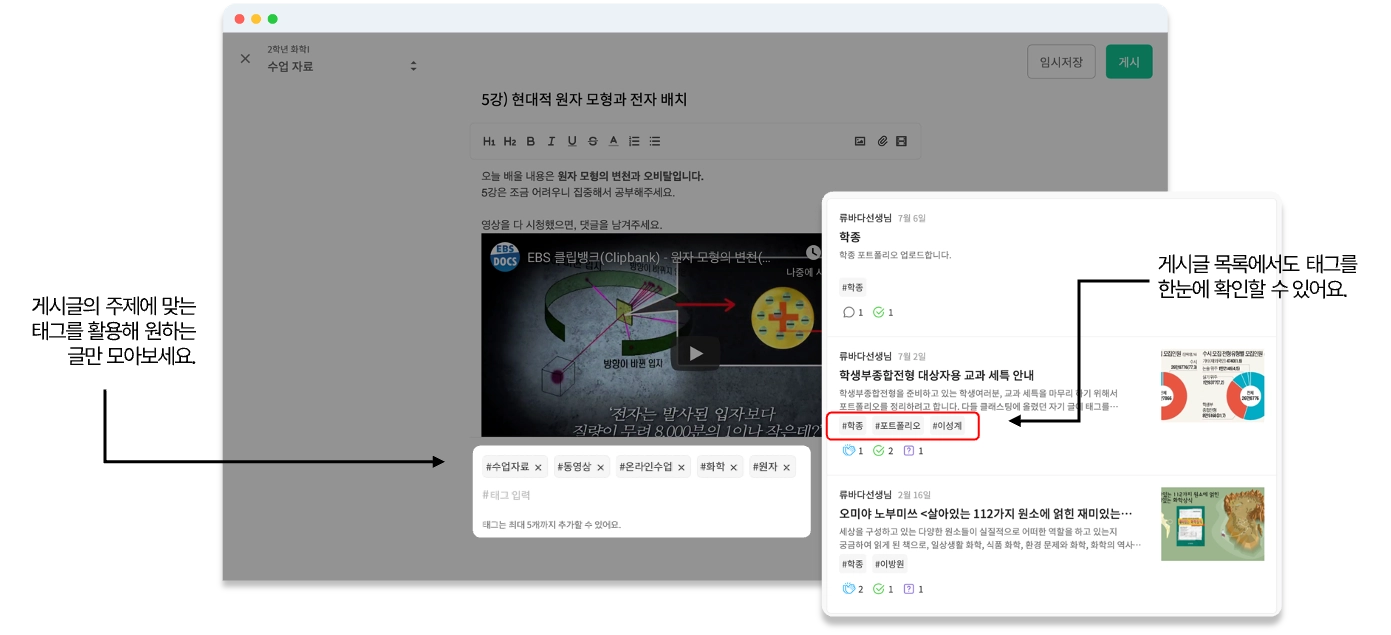1. [글쓰기]나 글 [수정] 시, 하단의 태그 입력 슬롯에 우리 클래스에서 활용할 태그를 입력하세요.