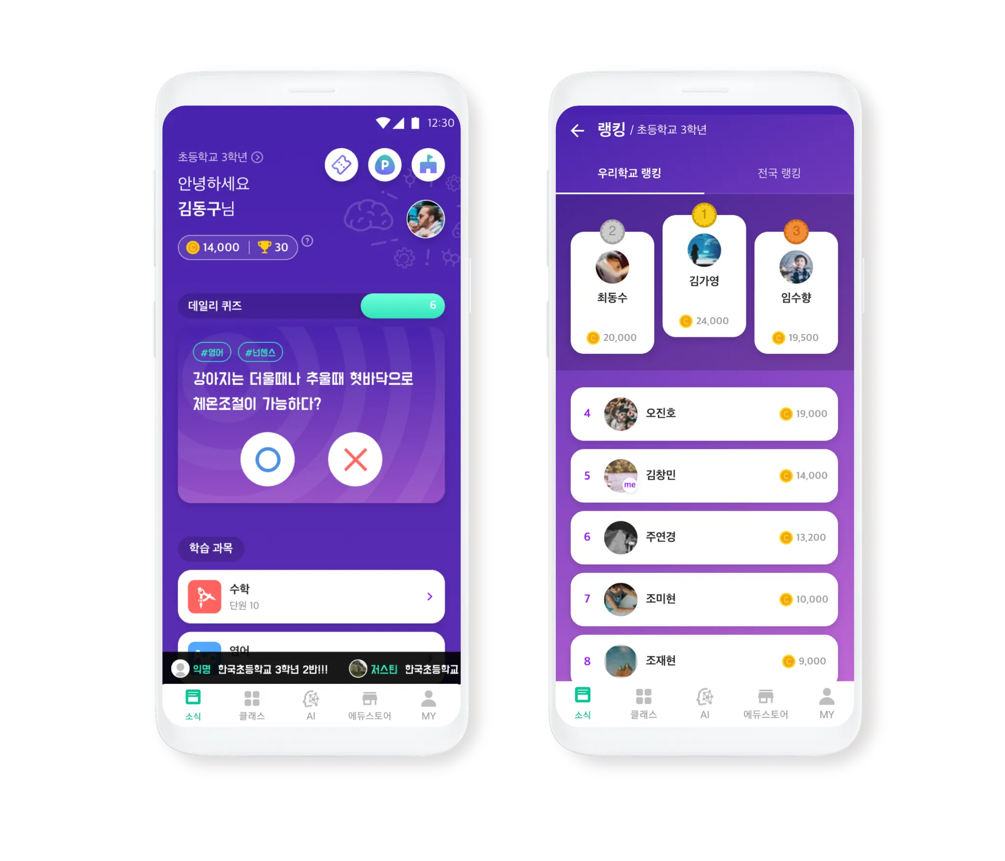학습 데이터를 쌓아 우리 학교와 전국 랭킹 순위권에 도전하며 더 큰 성취감을 느낄 수 있어요.
