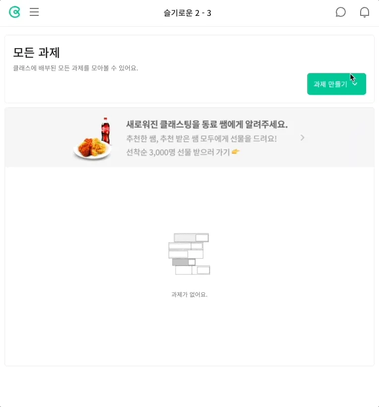 각종 자료와 퀴즈를 학습 자료 형태로 배부하는 ‘자료실 과제’를 이제 새로운 클래스에서 바로 활용하실 수 있어요!