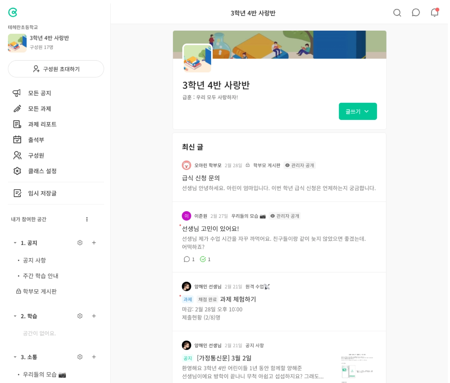 이제 클래스 첫 화면에서 공간에 상관없이 최신 글을 모아볼 수 있어요!
